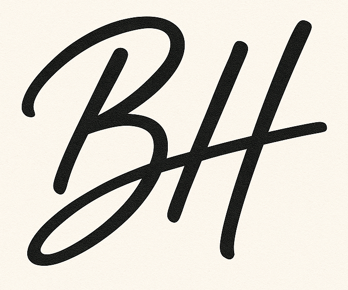 Seit meiner Kindheit schon habe ich immer wieder versucht, meine Initialen irgendwie hübsch zu gestalten. BH kann man aber auch irgendwie nur mühsam miteinander verknüpfen. Diese Idee, das als Schreibschrift zu gestalten und aus dem verlängerten Bogen vom B den mittleren Strich vom H zu formen, finde ich jedoch durchaus interessant.