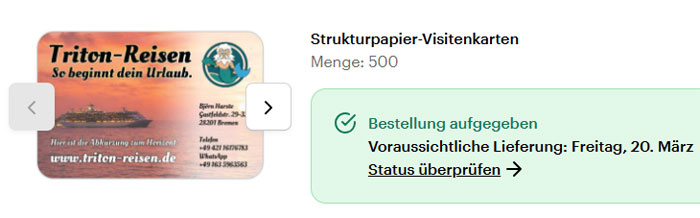 Unsere alten / ersten Triton-Visitenkarten hatten wir damals schnell zusammengeklickt. Die waren sicherlich nicht "gut", haben aber ihren Dienst erfüllt.
