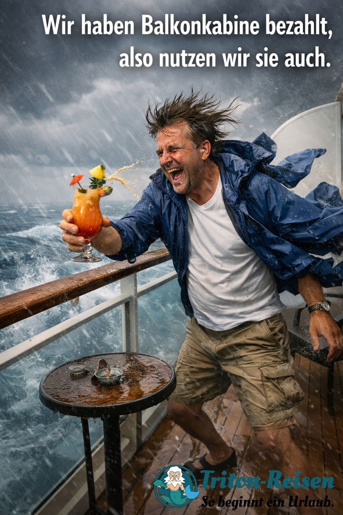 Da wir privat auch eher die "nördlichen" Kreuzfahrer und uns nicht beispielsweise im Mittelmeer, den Kanaren oder der Karibik herumtreiben, haben wir auch häufiger eher kühle Tage oder sogar richtig schlechtes Wetter, wenn wir auf dem Schiff unterwegs sind. Wir haben auch schon in dicker Jacke auf dem Balkon gesessen und unseren Cocktail geschlürft, während wir am hellichten Tage gegen eine graue Wand geguckt haben, wo sonst Wasser und Himmel zu sehen ist.