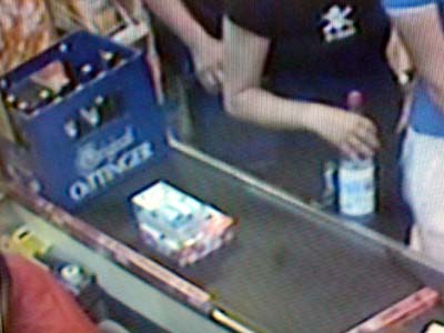 Beim zufälligen Blick zur Videoanlage bekam ich Panik: Was macht da eine Oettinger-Kiste auf dem Kassenband?!?