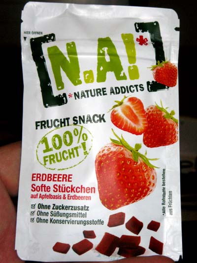 Einen SpOn-Artikel über die "Umfrucht-Falle" wollte ich zunächst in der nächsten Linksammlung mit aufnehmen. Aber er passte zufällig haargenau zu diesen "N.A!"-Snacks. Dieser Text beschreibt exakt diese kleinen Fruchtstückchen. Ich könnte mir sogar vorstellen, dass mit dieser Passage im Text: