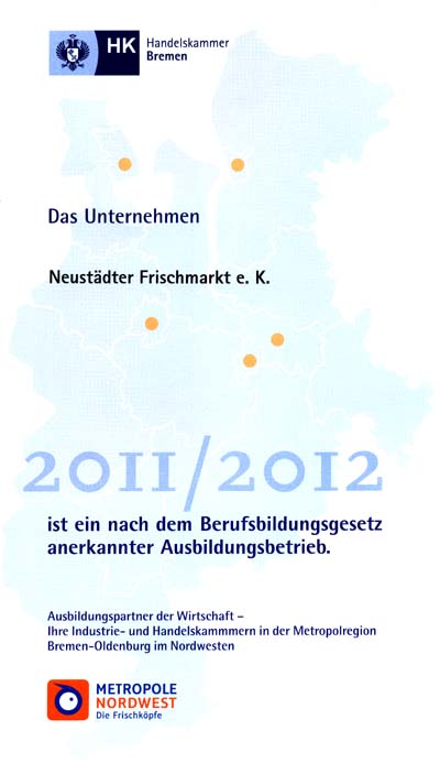 …"Neustädter Frischmarkt e.K." (Das bin ich, Anm.d.Red.) ist ein nach dem Berufsbildungsgesetz anerkannter Ausbildungsbetrieb. Auch in diesem Jahr wieder.