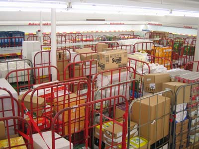 Heute war ich von morgens bis abends im neuen Laden. Das Kassensystem wurde installiert und am Nachmittag haben wir die ersten 39 Rollcontainer mit Ware bekommen.