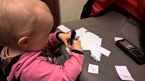 Das SPAR-Kind übt sich im Etiketten beschriften.