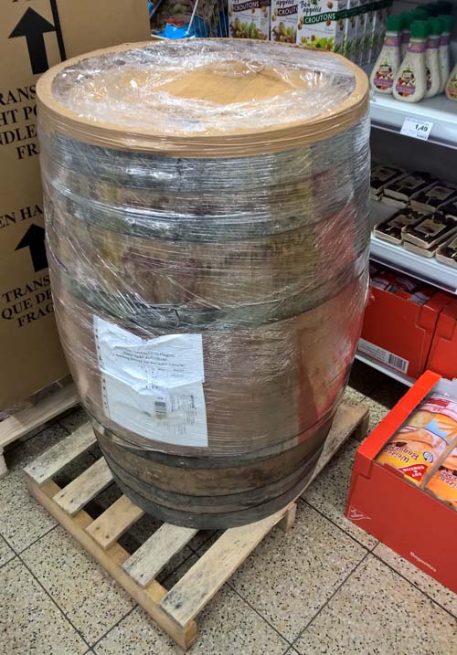 Das gestern Mittag erst bestellte Fass, das immerhin mit einer Spedition ausgeliefert wurde, ist heute schon angekommen!
