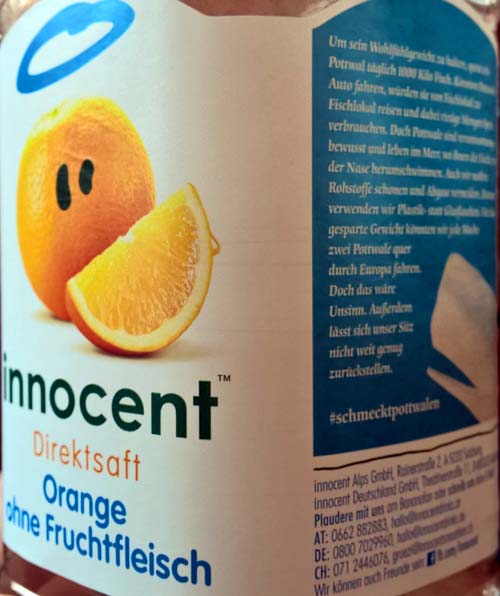 Vor einer Weile hatte ich beim privaten Frühstück zu Hause diese "Innocent"-Saftflasche in der Hand: