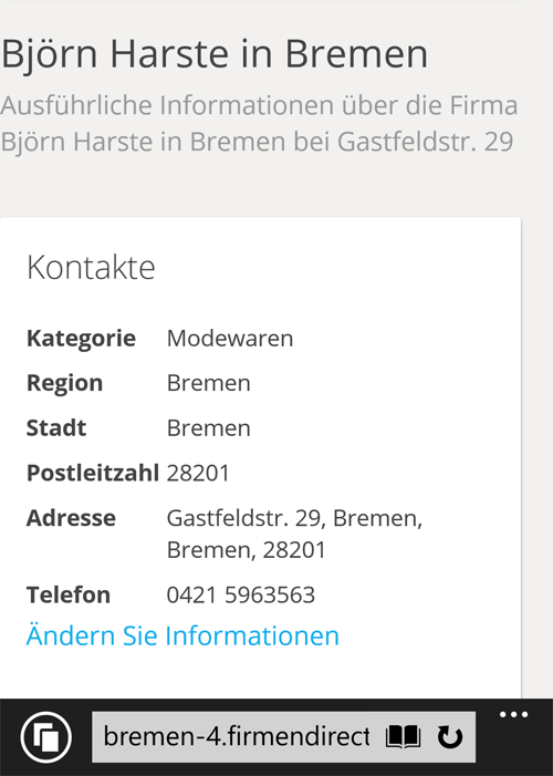 Eintrag in irgendeinem weiteren total brauchbaren nutzlosen Firmenverzeichnis. Dort bin ich mit "Kategorie: Modewaren" gelistet.