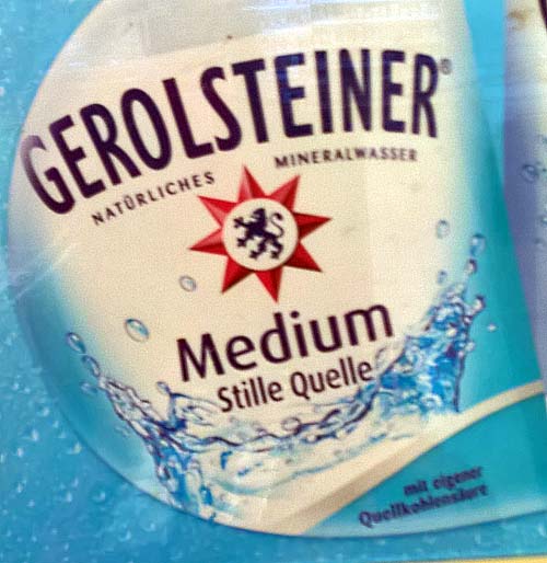 Gerolsteiner, ein altes Schild hier in der Abteilung, auf dem die ursprünglichen Bezeichnungen noch zu sehen sind. Von den Flaschen ist "Stille Quelle" aber mittlerweile verschwunden: