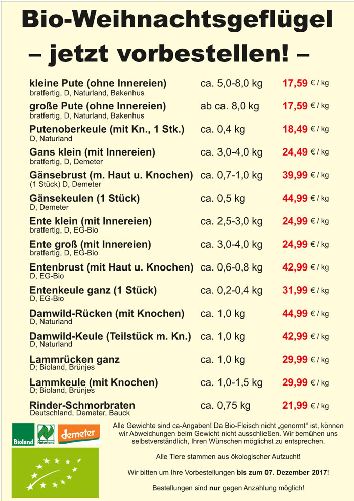 Bioweihnachtsgeflügelvorbestellung 2017