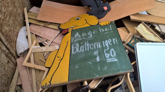 Nach dem das alte PICAS-Werbeschild zunächst etliche Jahre im Lager in der Gastfeldstraße vor sich hin staubte und nun schon knapp ein Jahr in der Halle stand, hat es nun endgültig den Weg in den Sperrmüll gefunden.