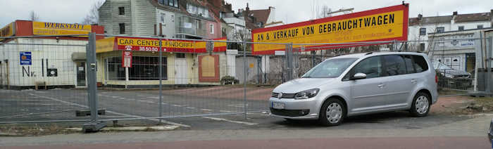Mal gucken, wie es am "Münchener Bogen" weitergeht. Der Autohändler ist offenbar inzwischen komplett ausgezogen, es wurde ein Baucontainer aufgestellt und das gesamte Areal ist von einem Bauzaun umgeben.