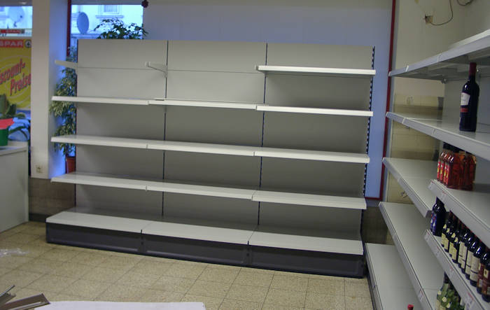 Das erste Regalstück steht bereit. Und das soll mal eine komplette Wein- und Spirituosenabteilung werden? Der Tag war ja noch jung …