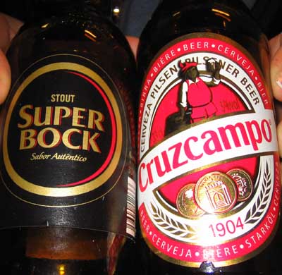 Eine Kundin hatte eben zwischen ihrem Leergut gleich zwei exotische Bierflaschen: Einmal "Stout Super Bock" aus Portugal und eines mit dem schwungvollen Namen "Cruzcampo". Keine Ahnung, wo die genau herkommen, aber auf jeden Fall sind sie eine originelle Bereicherung für's Blog.