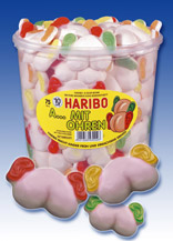 Dabei handelt es sich um "amüsante Schaumzuckerhintern mit lustig-bunten Fruchtgummiohren in den Farben rot, grün, orange" (Zitat Haribo-Website). Ahja, darauf hat die Welt gewartet.