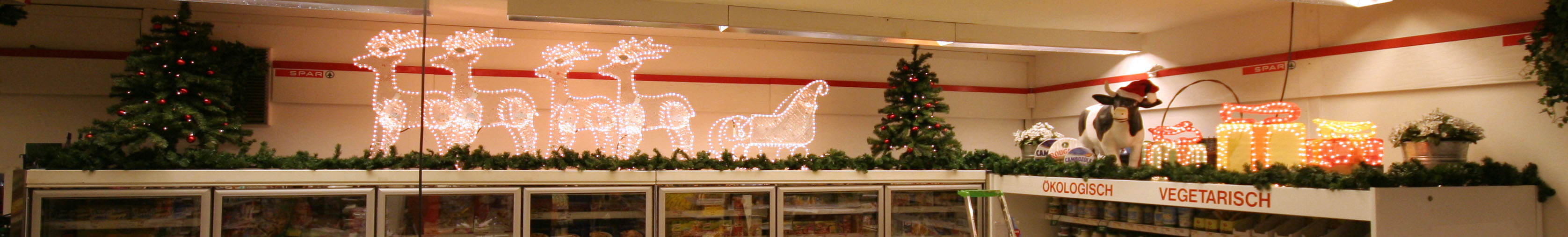 Nach zwei Stunden auf einer Trittleiter und vorhergehender Installation einer weiteren Steckdose auf unserem Vordach, haben wir nun auch endlich eine Weinachtsbeleuchtung vor dem Laden.