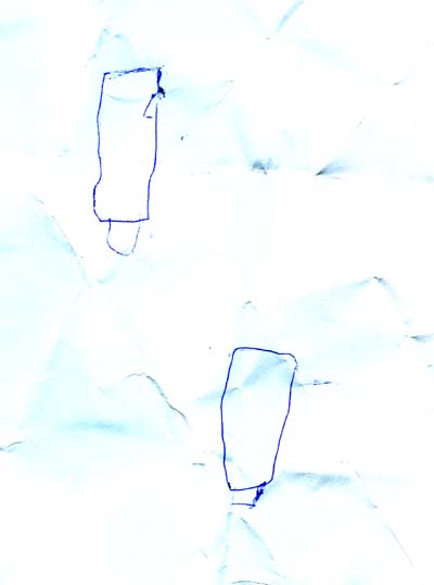 Ein fünfjähriger Junge brauchte unbedingt Batterien für seine neue Rennbahn. Um auch wirklich die richtigen mitzubringen, malte er genau auf, welche Größe er braucht.