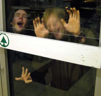 Kurz nachdem ich die letzten Kunden herausgelassen hatte, klopfte es an der Eingangstür. Nein, es klopfte nicht nur, es kratzte, bettelte und winselte. Zwei Kunden hockten dort und haben um Einlass gebeten, da sie doch unbedingt noch ein paar Dinge für ihre Party benötigten.