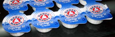 Ich trinke momentan für meine Verhältnisse relativ viel Kaffe. Aber zu unregelmäßig, als dass ich mir eine größere Packung Kondensmilch ins Büro stellen würde. Also begnüge ich mich mit kleinen Tassenportionen, in diesem Fall "Die Ergiebige 10" von Bärenmarke. Irgendwann ist mir mal aufgefallen, dass auf der Innenseite der Deckel Sprüche abgedruckt sind. (Was mir allerdings erst später auffiel war der fette Aufdruck auf der Umverpackung: "Jetzt mit lustigen Sprüchen auf den Deckelinnenseiten." Schade eigentlich. Ich hatte auf ein Easter Egg gehofft. )