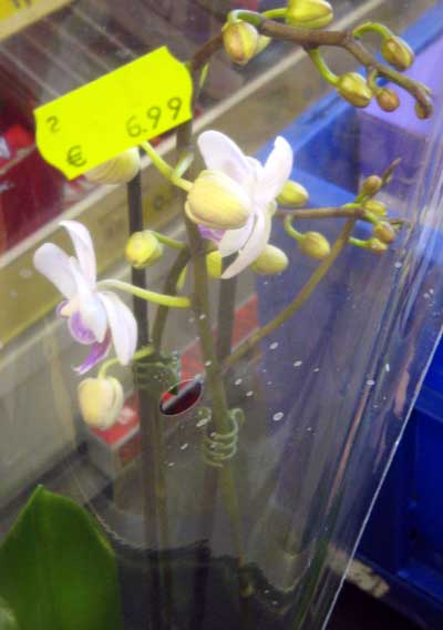 Da wir hier keine Weingläser verkaufen, schon gar keine benutzen mit kleinen Resten, hat dieses wohl ein Kunde oder eine Kundin am Samstag Abend in Partylaune hier zwischen den Blumen vergessen.