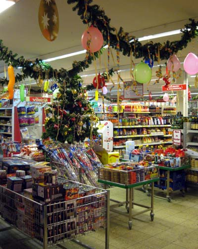 Diesmal haben wir übrigens nicht nur den Bereich über der Feuerwerks-Platzierung mit Luftschlagen, Luftballons und Girlanden dekoriert, sondern auch mal die anderen Bereiche des Ladens. Und, mal sehen, vielleicht vergraule erfreue ich die Kunden am Freitag ja mit einem bunten Medley aus Stimmungshits. :-)