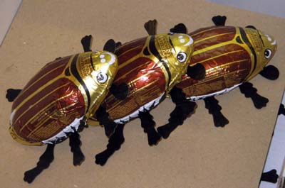Zu später Stunde hat jemand die Maikäfer beim Osteraufbau neu angeordnet. Gut, dass die Schokoinsekten prinzipiell Neutren sind – ansonsten wäre dieser Blogeintrag wohl (trotz der späten Stunde) nicht mehr jugendfrei.