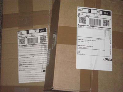 Die freundliche Fahrerin vom Paketdienst GLS hat mir diese zwei Pakete in die Hand gedrückt: