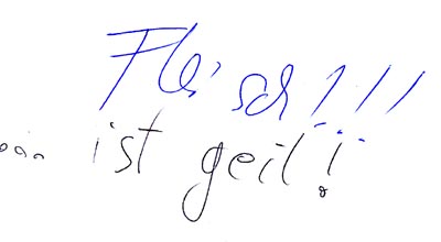 Während einer Besprechung hatte ich mir im Aufenthaltsraum auf einem Zettel "Fleisch!!!" notiert und die Notiz hinterher einfach auf der Arbeitsplatte liegenlassen. Ein paar Tage später fand ich ihn an der selben Stelle wieder – mit einer kleinen Ergänzung: