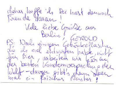 PS: Ich glaube, beim Datum ist er beim Schreiben des Briefes leicht durcheinandergekommen. Das Paket liegt hier jedenfalls nicht seit elf Jahren herum.
