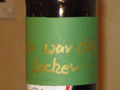 Dieses Etikett einer im Mülleimer vor dem Automaten entdeckten Flasche ist zwar nicht selbstgedruckt und der Rücknahmeautomat hat die Annahme auch nur verweigert, weil das Pfandlogo beschädigt war – aber irgendetwas passt da trotzdem nicht.