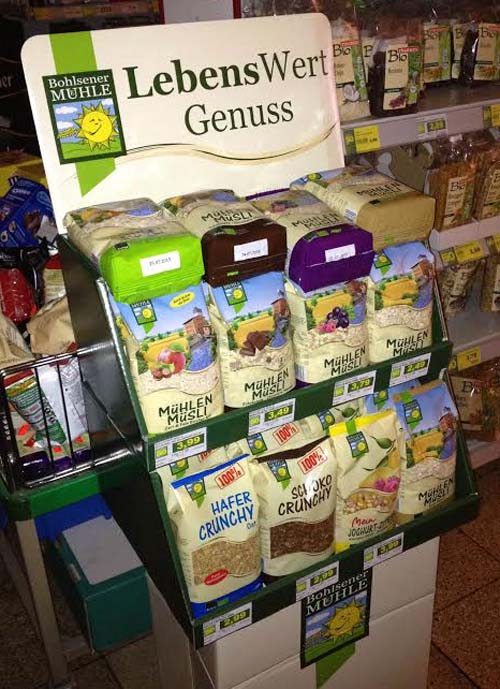 So, der erste Artikel, den wir auf der BioNord bestellt haben, hat auch schon den Weg hier in den Laden gefunden. Ab morgen früh dürfen meine Kunden endlich (wieder, aber das ist einer andere Geschichte) die Müslis der Bohlsener Mühle kaufen.