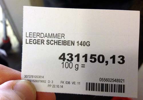 Ein Kunde, der so wenig kaufte, dass ich von mir aus nicht drauf kam, dass er eine Tüte benötigen könnte, blaffte mich an, ich solle ihm eine Tüte berechnen, ich entgegnete, dazu müsste ich wissen, welche Tüte.