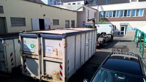 Für die nächsten Tage und möglicherweise Wochen steht ein weiterer Container hier auf dem Hof. Der neue hat einen Deckel und ist komplett abschließbar. Darin werden wir in der nächsten Woche sämtliche Einwegflaschen und Getränkedosen sammeln, die hier in der Zeit ohne Leergutautomat anfallen werden.