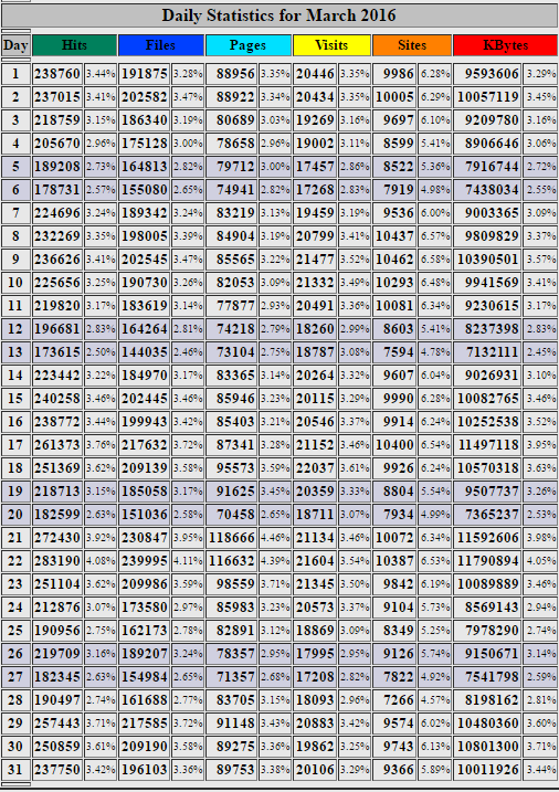 großen Artikel in der BILD irgendwie spürbar gestiegen sind. Nein, sie sind nicht gestiegen, aber auch nicht gefallen. Hier mal die Serverstatistiken seit Anfang März, damit ihr ein paar Vergleichszahlen habt.
