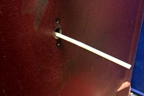 Ein Fläschchen Lebensmittelfarbe, das so im Regal bei den Backzutaten stand. Keine Ahnung, was damit passiert ist. Das sind jedenfalls ganz massive Schleifspuren. Da haben schon ganz ordentliche Kräfte gewirkt…