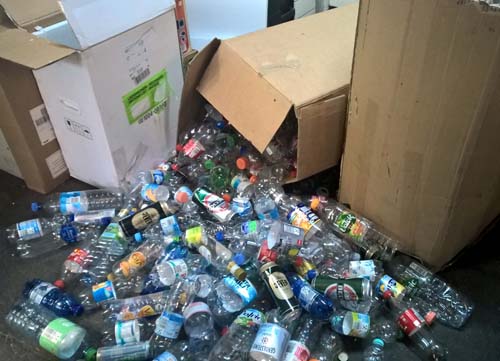 Kollegen aus der Hölle. Heute: Wer hat den Pappkarton, in dem wir immer temporär die manuell angenommenen Einwegflaschen sammeln, wieder an seinen Platz geschoben, obwohl der Boden quasi nicht mehr vorhanden war?