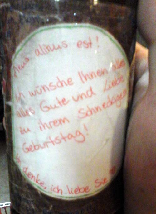 Liebeserklärung auf einer Bierflasche… Hat wohl nicht so geklappt, wie geplant. Ansonsten hätte der oder die Angebetete die Flasche wohl nicht einfach bei uns im Automaten entsorgt.