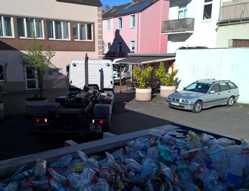 Es grenzt fast an ein Wunder: Die Flächen, die der LKW des Entsorgungsunternehmens benötigt, um hier rückwärts auf den Hof fahren zu können, waren heute Morgen ausnahmsweise mal nicht zugeparkt. Schnell die Hütchen hingestellt und gerade mal eine halbe Stunde später passierte ein wundervolles Ereignis…