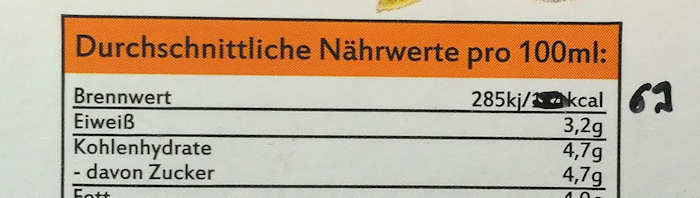 So bekommen wir momentan und seit zwei Wochen schon Milchpackungen, auf denen die Angabe der Kilokalorien handschriftlich ausgebessert wurde. Ungewohnt, aber doch irgendwie richtig. Diese Vorgehensweise tut keinem weh und so werden Kosten gespart und Ressourcen geschont. Gerade, weil es sich dabei um einen Bio-Betrieb handelt, würde es schon ausgesprochen komisch anmuten, wenn sie hunderte oder tausende ungenutzte Kartonverpackungen direkt wieder entsorgen würden.
