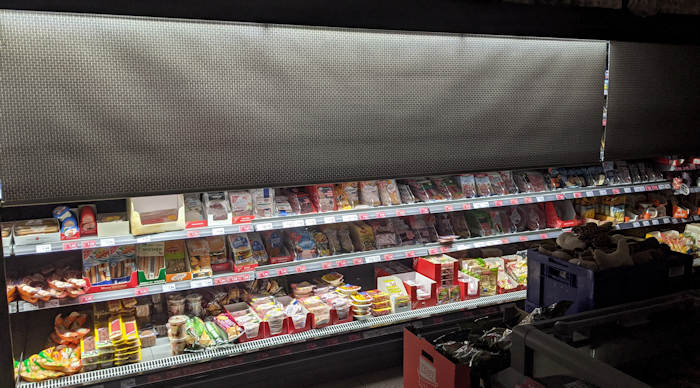 Wenn wir abends das Licht im Markt ausschalten, geht auch die Beleuchtung in den Tiefkühltruhen und im Brotregal aus. Die Vorhänge der Kühlregale fahren herunter und auch deren Beleuchtung schaltet sich ab. Fast vollständig zumindest. Aus irgendeinem Grund ist seit einer Weile in einem der Kühlregalmodule noch das Licht an.
