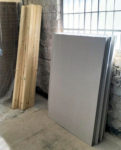 Sieht auf dem Bild nach nichts aus, aber die Platten sind 1,50m hoch, der Haufen wiegt laut Fermacell-Produktdatenblatt etwas über 400kg: