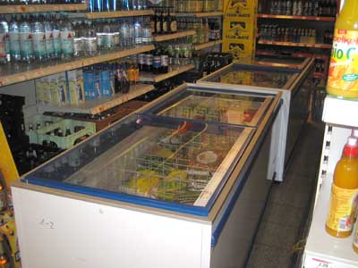 Zwei Tiefkühltruhen mußten weichen. Da es leider keine andere Möglichkeit gab, haben wir sie kurzerhand in einen der Gänge geschoben. Jetzt kommt man eben weder an das Tiefkühlgemüse noch an die Getränke an. Gibt's heute Abend nach der Veranstaltung eben Bier und Pizza...
