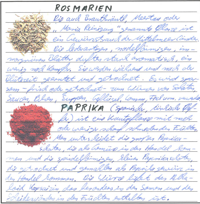 Paprika (Spanischer, türkischer Pfeffer) ist eine Krautpflanze mit mehr oder weniger scharf schmeckenden Früchten. Man unterscheidet die großen Paprikaschoten, die als Gemüse in den Handel kommen und die spindelförmigen, kleinen Paprikaschoten, die getrocknet und gemahlen als Paprikagewürz in den Handel kommen. Die Würze liefert das Alkaloid Kapsaizin, das besonders in den Samen und den Scheidewänden in den Früchten enthalten ist.