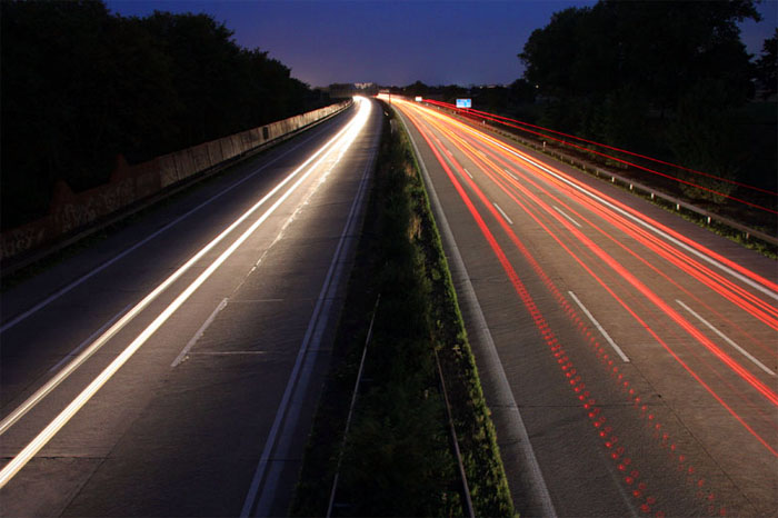 Langzeitbelichtungsexperimente mit meiner Spiegelreflexkamera. Ein interessantes Detail, das ich da mit eingefangen hatte: Die gepulsten LED-Rücklichter eines Autos.