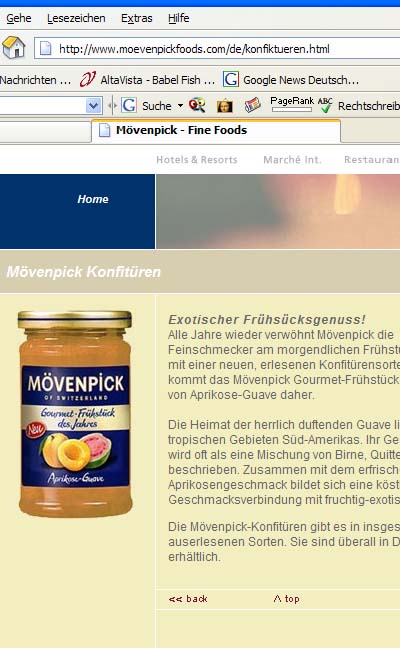 Um es hier einfach mal festzuhalten: Der Link auf mövenpickfoods.com enthält vermutlich einen Tippfehler. Die Seite heißt "konfiktueren.html" - und ich glaube nicht, dass das so gedacht war.