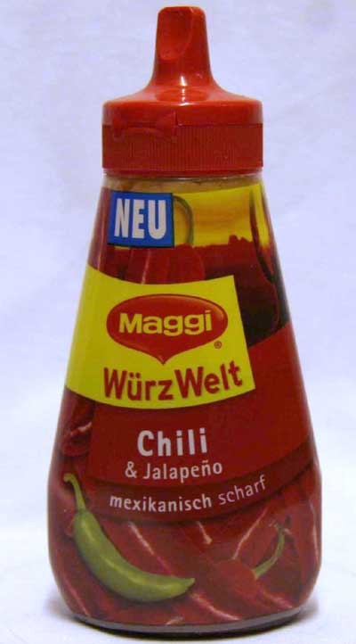 Es ist tatsächlich so, dass ich völlig begeistert war, als ich die Sauce zum ersten Mal probiert habe. Diese Begeisterung schlug sehr schnell in Ablehnung um. Maggi muß irgendwo ein Dauer-Spar-Abo in irgendeinem Salzbergwerk haben. Anders kann ich mir diese Geschmacksverunstaltung nicht erklären. Ich esse gerne salzig, aber "WürzWelt Chili" ist sogar mir etwas zu natriumchloridlastig.