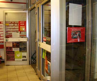 Noch weniger kann ich es leiden, wenn man Plakate am Sonderplatz abreißt. Wir haben nämlich an der Seitenscheibe ein extra Plätzchen für Freunde und befreundete Projekte (regional/ökologisch/Fair Trade). Dieser Aushang ist immer zu sehen, egal, ob die Eingangstüren geöffnet oder geschlossen sind.