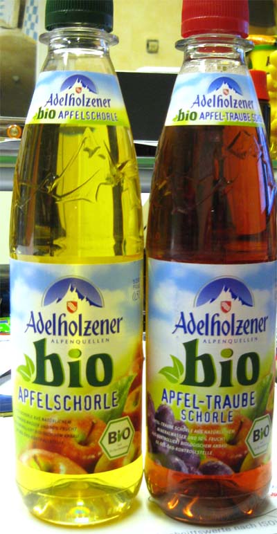 Vor ein paar Wochen bekam ich ein Päckchen von der "PRint Agentur für Öffentlichkeitsarbeit GmbH". Der Inhalt: zwei Flaschen der (inzwischen nicht mehr ganz so) neuen Adelholzener Bio-Schorlen. Eigentlich eine plumpe Art, Werbung zu bekommen, aber die Betreffzeile in dem Schreiben fand ich so klasse: Gegen Durststrecken beim Bloggen.