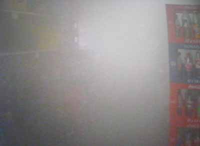 Erfreulicherweise hat sich hier in der großen Halle alles innerhalb von wenigen Minuten wieder restlos verzogen. Viele Kunden haben die Schwaden nicht einmal mitbekommen, die unter der Decke langkrochen. Wenigstens ist der Nebel ungefährlich.