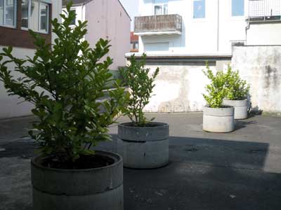 So sehen derzeit die Betonringe mit Kirschlorbeer aus, die meinen Hof eigentlich (etwas) verschönern sollten. Nicht nur, dass die Pflanzen in den letzten drei Jahren kaum nennenswert gewachsen sind - nein, die Blätter sind alle gelb und schlapp.