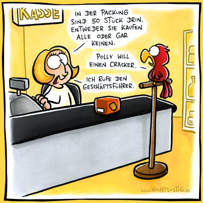 Zu diesem Beitrag und vor allem der Aussage, dass man Packungen aufreißen und nur so viel kaufen darf, wie man möchte, musste Blogleser Jens spontan an mich denken, als er diesen Nichtlustig.de-Cartoon entdeckt hat.